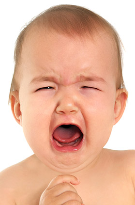 One of the first signs a baby will show is a spreading of extra color on the face. An example is that my grandson’s eyebrows turn red. Others will flush across the cheeks or ears or neck, or all three. If you think about it, this is exactly what adults do in response to stress too.